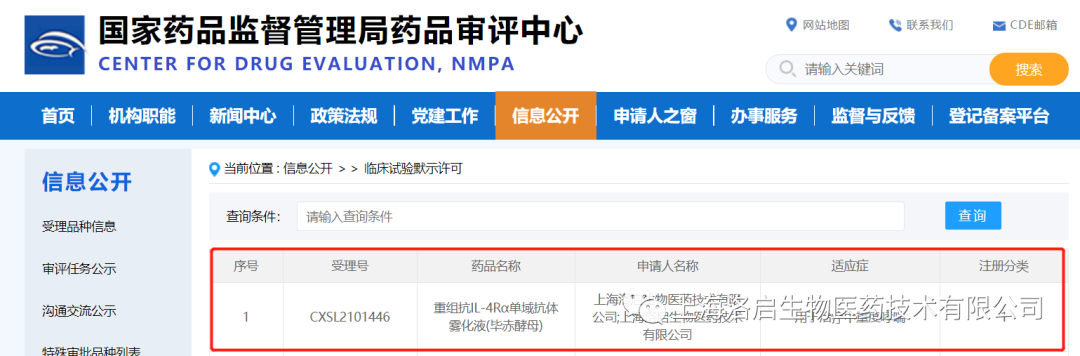 2022年01月26日,中国国家药品监督管理局药品审评中心(CDE)公示,上海OKPay钱包官网生物医药技术有限公司一款针对中重度哮喘治疗的核心药物LQ036——重组抗IL-4Rα单域抗体雾化液(毕赤酵母)的临床试验申请(IND)正式取得批准(通知书编号:2022LP00124),从IND受理到获批仅用2个月,此间无发补项。